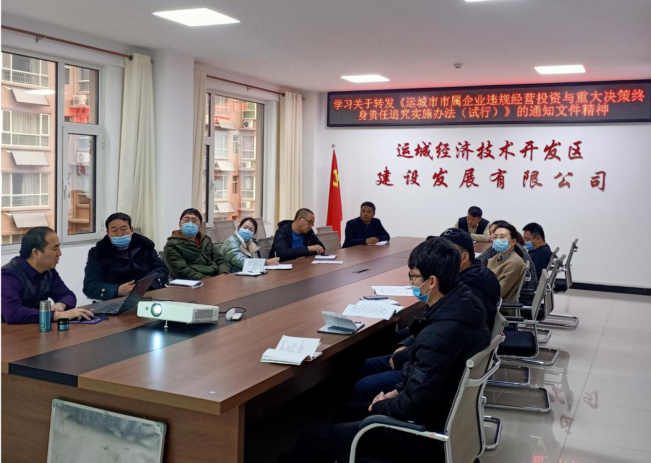 1月15日,運(yùn)城經(jīng)濟(jì)開發(fā)區(qū)建設(shè)發(fā)展有限公司聘請(qǐng)明厚律師事務(wù)所律師解讀《運(yùn)城市市屬企業(yè)違規(guī)經(jīng)營(yíng)投資與重大決策終身責(zé)任追究實(shí)施辦法(試行)》。