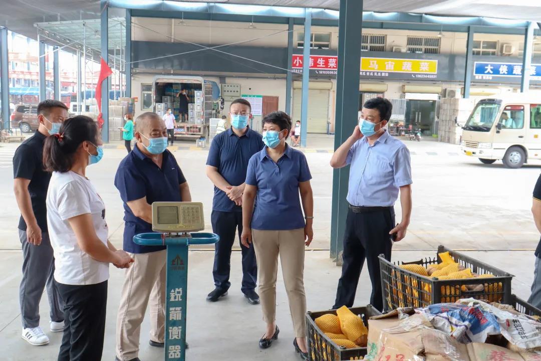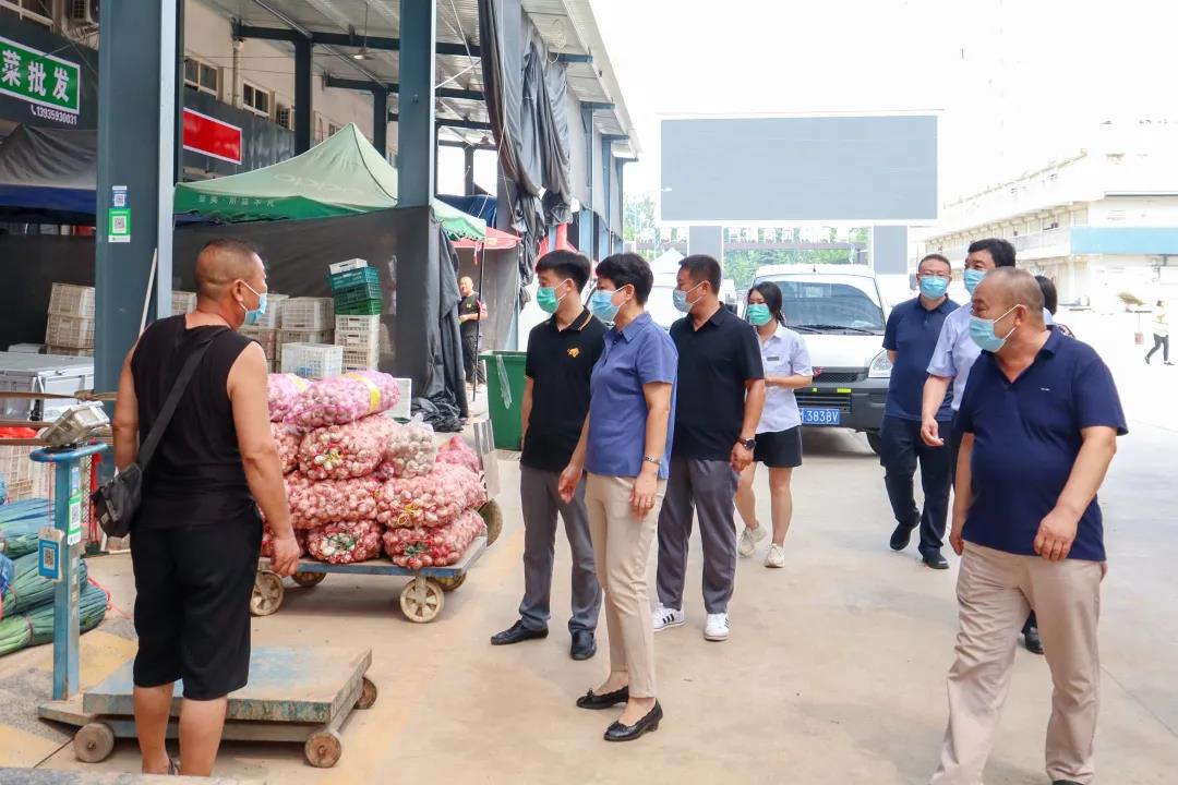 8月4日,運(yùn)城經(jīng)濟(jì)技術(shù)開發(fā)區(qū)黨工委副書記黃梅芳一行深入綠元市場檢查指導(dǎo)疫情防控工作,運(yùn)城經(jīng)濟(jì)開發(fā)區(qū)建設(shè)發(fā)展公司總經(jīng)理陳朋飛、綠元農(nóng)副產(chǎn)品批發(fā)市場管理中心主任趙倬等領(lǐng)導(dǎo)陪同。